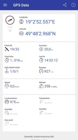 Приложение показывает вашу широту и долготу с высокой точностью. Особенно полезна функция определения высоты над уровнем моря - незаменимая вещь для походов в горы или просто для интересных наблюдений. Когда мы тестировали приложение в горной местности, разница в показаниях высоты между обычным смартфоном и специализированным альтиметром составила всего несколько метров!