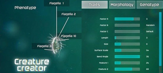 Самое интересное в Bionix - возможность создать собственное существо с нуля! Вы можете выбрать форму тела, добавить щупальца или другие конечности, и отправить своего микроскопического питомца в большое плавание.