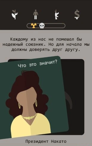 Разработчики из студии Cornago Stefano создали уникальную атмосферу безнадежности, которая постепенно сменяется надеждой благодаря вашим мудрым решениям. Игра напоминает политический триллер, где ставки максимально высоки.