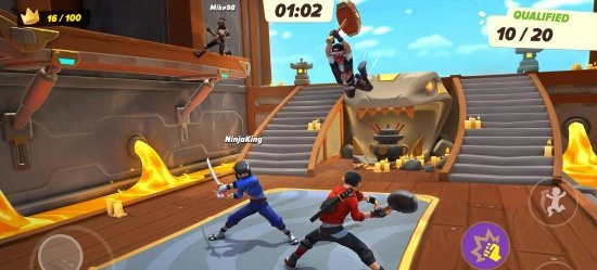 В Ninja Party вас ждет постоянное движение и мгновенные решения. Двенадцать игроков начинают схватку одновременно, но только один получит корону победителя. Арены постоянно меняются — от крыш небоскребов до узких переулков древних городов.