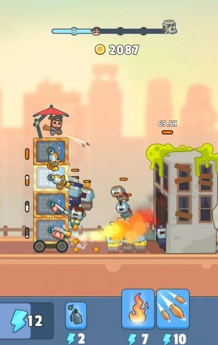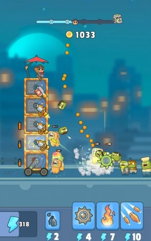 Начинаешь с простых блоков, но постепенно возводишь настоящую твердыню. Каждый уровень башни – это новые возможности для размещения оружия и укрепления обороны. Строительство здесь напоминает игру в конструктор, только ставки гораздо выше – от твоих решений зависит выживание последних людей на Земле.