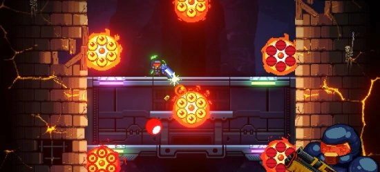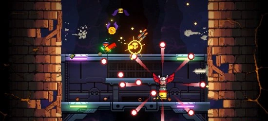 Представьте себе лифт, который мчится вверх, а вы находитесь внутри во время настоящего хаоса — примерно так ощущается каждая секунда в Exit the Gungeon. Игра построена на принципе постоянного движения: стоять на месте здесь просто невозможно. Ваш персонаж автоматически перекатывается по небольшой платформе, уклоняясь от бесконечного потока пуль.