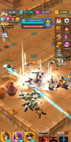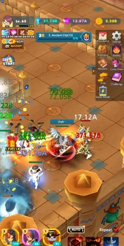В Idle Leo вам не нужно сидеть у экрана весь день, словно у костра — просто запустите игру, и ваш инвентарь начнет наполняться сокровищами: алмазами, золотом и уникальными предметами. Обучение проходит быстро и понятно, сразу даря щедрые награды, которые помогут развить ваших героев. Продвигаясь, вы сможете улучшать персонажей: прокачка уровней, трансцендентность и использование реликвий открывают доступ к новым силам и усилениям, добавляя глубину и стратегию в игровой процесс.