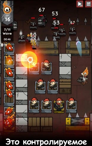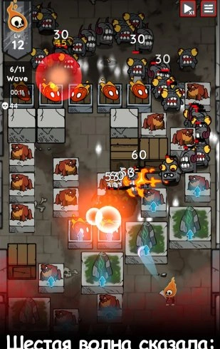 Особенно интересно наблюдать, как разные типы башен взаимодействуют между собой. Ледяная башня замедляет врага, а огненная добивает его, создавая эффектную комбинацию разрушения.