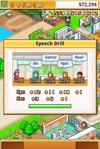 Система управления интуитивно понятна — большинство действий выполняется простыми касаниями. Статистика показывает успеваемость учеников, популярность заведения и финансовое состояние. Эти данные помогают принимать взвешенные решения о дальнейшем развитии.