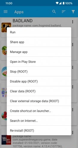 Взломанная версия позволяет работать с любыми программами на устройстве - от обычных пользовательских до системных. Можно удалять, отключать, запускать и делиться файлами одним касанием. Особенно полезна функция пакетного удаления, когда нужно очистить сразу несколько программ.