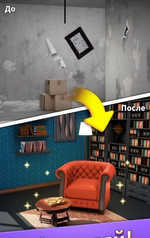Особую атмосферу создает 3D-режим от первого лица. Можно буквально прогуляться по своей берлоге, оценить результат работы и пригласить друзей на виртуальную экскурсию. Такой подход встречается нечасто в мобильных головоломках.