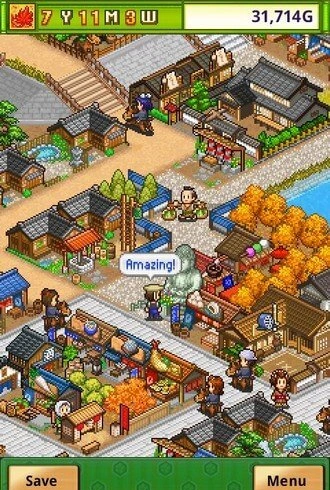 Пиксельная графика Oh!Edo Towns выполнена в классическом стиле Kairosoft - яркая, детализированная и полная очарования. Каждое здание прорисовано с любовью к деталям, а анимации жителей добавляют живости игровому миру.