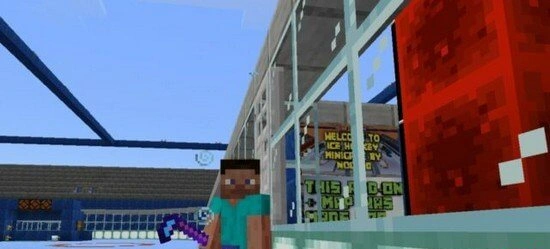 Разработчики создали не просто карту, а целую хоккейную вселенную внутри Minecraft PE. Здесь есть все необходимое для полноценного матча: ледовая арена, ворота, скамейки запасных и даже раздевалки.