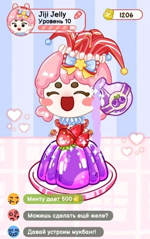 Главная героиня начинает свой путь как начинающий стример, но постепенно превращается в настоящую звезду мукбанга. Вы будете экспериментировать с десятками различных вкусов желе - от классических фруктовых до самых неожиданных комбинаций. Каждая трансляция требует тщательной подготовки: выбор продуктов, создание атмосферы и взаимодействие с аудиторией.