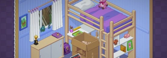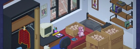 Восемь переездов означают восемь разных домов с уникальными планировками. В каждом новом месте появляются свежие предметы, которые рассказывают о том, как менялась жизнь персонажа. Детские игрушки сменяются учебниками, затем появляется рабочая техника и семейные фотографии.