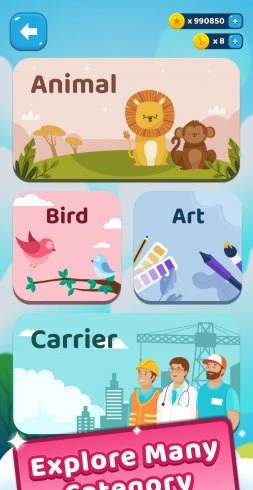 Тематика головоломок охватывает животных, путешествия, историю и природу. Каждая категория погружает в определенную атмосферу, превращая изучение новых слов в увлекательное приключение.
