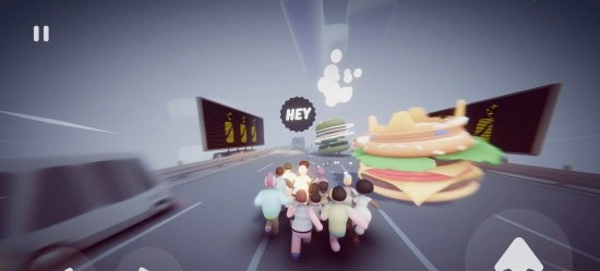 Основная задача звучит просто — довести толпу до финиша. Но на пути встают препятствия в виде гигантской еды. Огромный бургер может снести половину вашей команды, а летящий пончик заставит резко свернуть в сторону. Разработчики явно вдохновлялись абсурдным юмором, когда придумывали врагов.