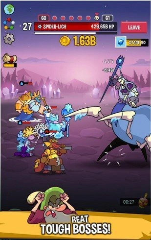Сражения происходят автоматически - герои атакуют врагов самостоятельно, но вы выбираете состав команды и распределяете усиления. Каждый боец имеет уникальные способности, которые можно прокачивать. Стратегия заключается в правильном подборе героев под конкретного противника.