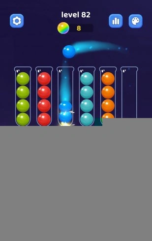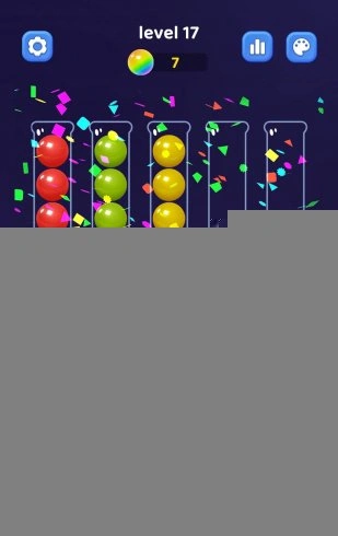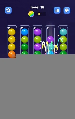 Создатели позаботились о приятной картинке. Шарики выглядят объёмными и блестящими, их движения плавные и реалистичные. Когда перемещаешь шарик из одной пробирки в другую, он мягко скатывается вниз с характерным звуком. Эти мелочи создают ощущение, что взаимодействуешь с настоящими предметами, а не просто двигаешь пиксели по экрану.
