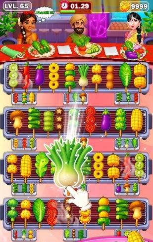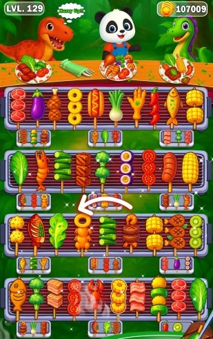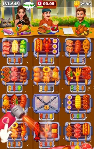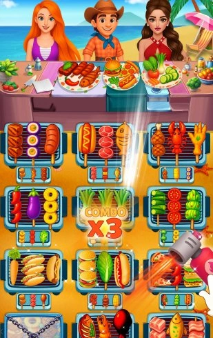 В центре всего — механика матчинга: соединяйте похожие элементы, чтобы формировать готовые блюда и не дать грилю переполниться. Начинается все просто, с базовых заказов вроде пары сосисок, но постепенно добавляются экзотические ингредиенты — овощи, специи, мясо — и таймер тикает быстрее. Мне нравилось планировать ходы заранее, словно в шахматах на кухне, чтобы комбо сработали идеально. Уровни усложняются естественно: новые продукты ускоряют темп, а ограниченное место на гриле добавляет напряжения. Бонусы вроде огненных ускорителей или поворотов доски спасают в критические моменты, превращая хаос в триумф. Это не просто кликер — здесь нужно думать, и каждый успех приносит настоящее удовлетворение, особенно когда клиенты аплодируют.