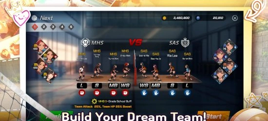 Соберите свою мечту-команду, подбирая персонажей с уникальными способностями и активируя школьные бонусы для синергии. Главная героиня, Цзи-су Хань, начинает как новичок, открывающий волейбол, и вырастает в лидера, ведущего к победам в лигах. Эта история трогает до глубины души — от первых сомнений до триумфа, напоминая, как спорт меняет жизни. Графика в стиле аниме с детализированными анимациями делает каждый матч зрелищным, а кастомизация скинов и фонов добавляет личного шарма.