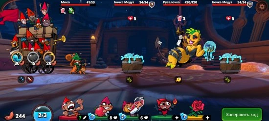 В вашем распоряжении окажется 24 героя-гнома, у каждого собственная колода и особые умения. Механика напоминает шахматы - нужно думать на несколько ходов вперед, просчитывать комбинации и использовать слабости противника. В арсенале 130 карт с разными эффектами: одни отравляют врагов, другие ослепляют, третьи усиливают союзников. Главное - найти правильную синергию между картами и создать работающую стратегию.