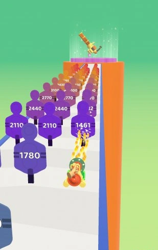 По пути встречаются цветные ворота с улучшениями. Проходя через них, можно усилить урон, скорострельность или получить временные бонусы. Выбор маршрута имеет значение — иногда стоит рискнуть ради дополнительной силы, а иногда лучше сохранить то, что есть.