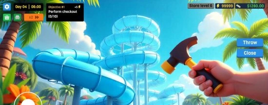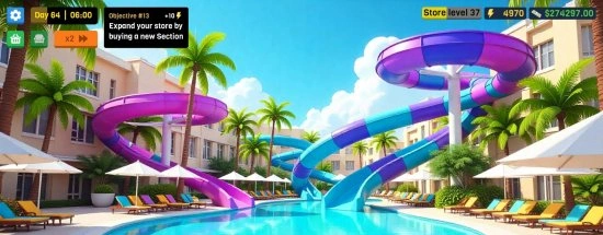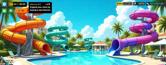Первые минуты в игре напоминают открытие маленького семейного кафе: вы буквально везде одновременно. Продаёте билеты у входа, бегаете к киоску с хот-догами, проверяете, не засорился ли фильтр в бассейне. Разработчики не стали упрощать начальный этап, и это правильно — вы чувствуете каждый заработанный рубль и понимаете ценность автоматизации.