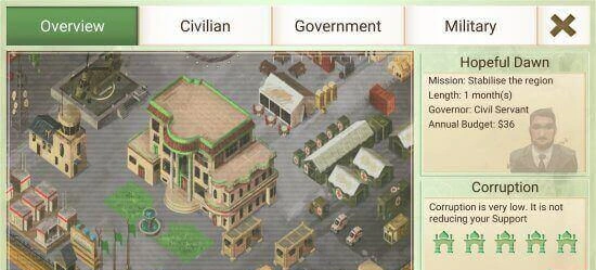 Нанимайте коалиционные войска, формируйте местные отряды, используйте авиацию и беспилотники для разведки. Главное - не переусердствовать с военной силой, иначе население начнет вас бояться больше, чем повстанцев.