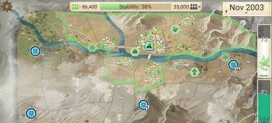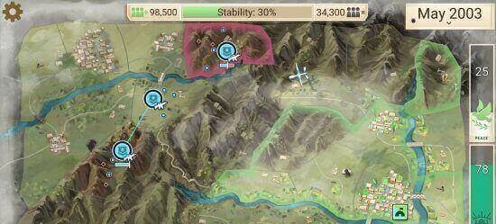 Это не просто экономический симулятор. Повстанцы активно действуют на карте, захватывают территории и разрушают вашу инфраструктуру. Приходится думать как политик и генерал одновременно - словно играете в шахматы, где фигуры двигаются сами по себе.
