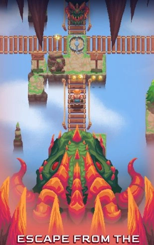 Древний дракон парит над головой, не давая расслабиться ни на секунду. Это создает постоянное напряжение: нужно одновременно следить за препятствиями впереди и контролировать угрозу сверху. Рывки, прыжки и уклонения становятся частью танца выживания, где малейший промах заканчивается поражением.