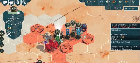 Игровой процесс построен на тактическом мышлении и грамотном распределении ресурсов. Вы создаёте подвижное поселение, которое перемещается от одной локации к другой. Каждая остановка - это возможность собрать новые материалы, но и риск потратить драгоценное время.
