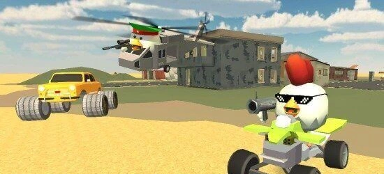 Транспорт на любой вкус По игровым локациям разбросаны различные транспортные средства – от обычных автомобилей до гоночных машин, внедорожников и даже танков! Представьте себе курицу за рулем танка – это зрелище стоит увидеть.