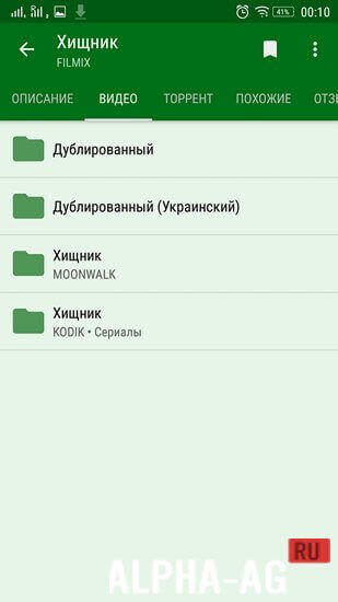 Приложение умеет не только показывать видео, но и предлагает доступ к аудиозаписям. Особенно ценна возможность поиска по множеству популярных ресурсов, включая торренты. Если у вас установлен торрент-клиент, вы сможете не только смотреть, но и скачивать понравившийся контент.