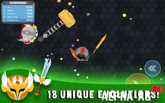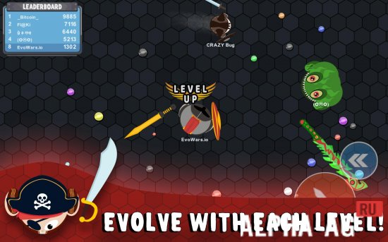 Ваше путешествие начинается скромно - вы всего лишь небольшой боец с примитивным оружием. Но не отчаивайтесь! Собирая шары опыта и побеждая других игроков, вы будете расти в размерах, получать более мощное оружие и открывать новые возможности. Всего в игре более 17 уникальных эволюций, каждая со своими особенностями.