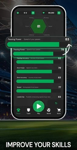 В Club Legend вы не просто играете, вы растете как футболист. Улучшайте силу удара, скорость, технику - словом, все то, что делает футболиста звездой. Это как качалка, только вместо гантелей у вас футбольный мяч!