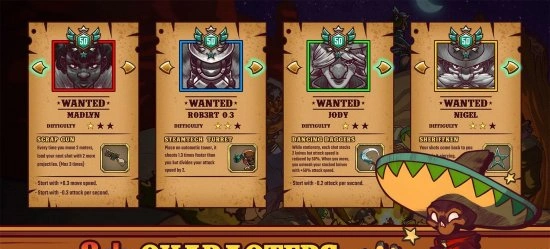 • Антураж Дикого Запада: Яркая стилизованная графика погружает вас в атмосферу старого запада, где охотники за головами сталкиваются с преступниками.