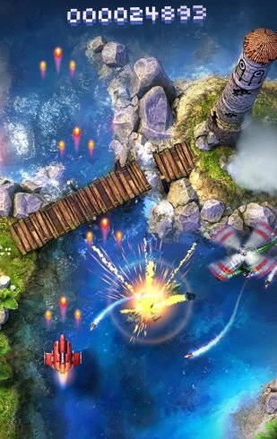 Игра затягивает с первых минут, как хороший боевик. Каждый уровень - это отдельная история, наполненная яркими визуальными эффектами и зрелищными взрывами. Вражеские эскадрильи атакуют волнами, а массивные боссы проверят вашу реакцию и тактическое мышление.