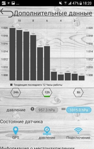 Приложение не просто показывает текущие данные, но и ведёт историю измерений. Вы сможете наблюдать за изменениями давления в виде наглядных графиков. Это как иметь личного синоптика, который всегда под рукой!