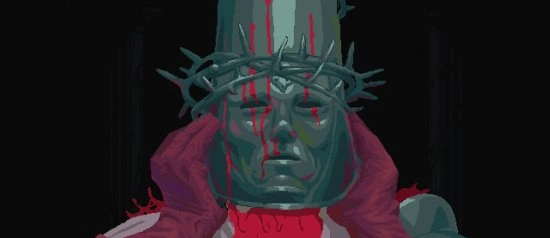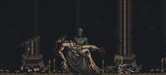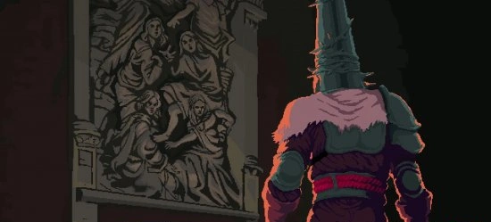 Пиксельная графика Blasphemous создаёт удивительный контраст - с одной стороны, она кажется простой, с другой - передаёт такие детали и эмоции, что порой мурашки бегут по коже. Каждая локация проработана до мелочей и рассказывает свою историю без единого слова.