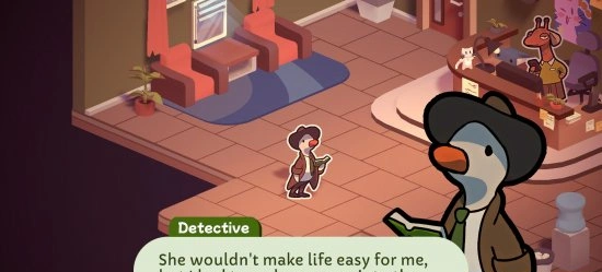 Графика Duck Detective выполнена в приятном мультипликационном стиле, напоминающем уютные вечерние мультфильмы. Каждая локация проработана до мелочей — от захламлённого полицейского участка до таинственных мест преступлений. Эти детали не только радуют глаз, но и часто содержат важные подсказки!