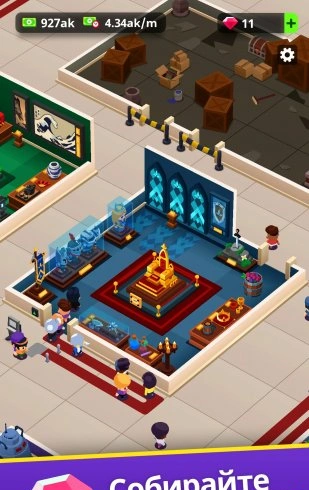 Игра затягивает своей неторопливостью и в то же время постоянным ощущением прогресса. Даже когда вы не играете активно, ваш музей продолжает работать и приносить прибыль — идеально для тех, кто ценит свое время.