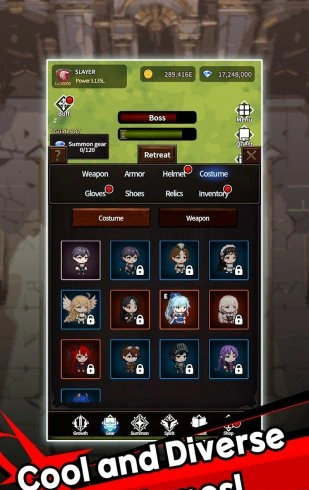 Важной особенностью игры является система настройки внешнего вида героя. Вы можете менять костюмы и оружие, создавая уникальный образ, который будет отражать вашу индивидуальность. Каждый элемент экипировки не только меняет внешний вид, но и влияет на характеристики персонажа.