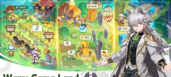 Ваш лагерь — это не просто место отдыха, а настоящая база для развития. Используйте печи, сельскохозяйственные угодья и карьеры для производства ресурсов. Каждому Monmate можно назначить задачи в зависимости от его талантов и элементов, что ускорит прогресс и сделает игру более стратегической.