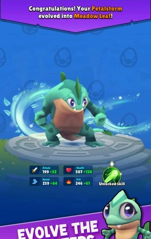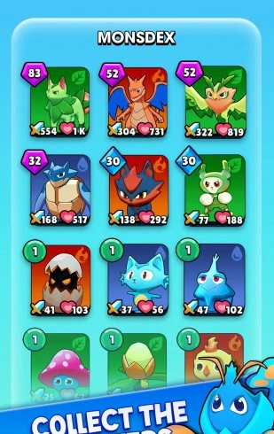 Собранных монстров можно кормить, тренировать, прокачивать и учить новым трюкам. С каждым боем команда становится сильнее, а вы - опытнее. Приятно видеть, как маленький новичок превращается в грозного бойца, способного удивить даже самых искушённых соперников.