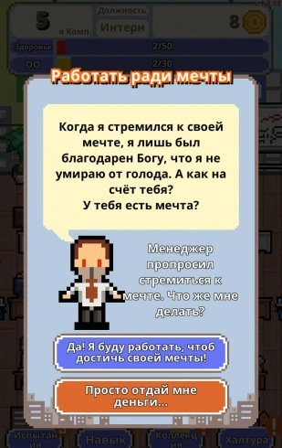 Погрузитесь в удивительный мир поиска работы вместе с игрой «Не уволься!» - это не просто симулятор, а настоящий квест для тех, кто не боится испытаний. Здесь вы примерите на себя роль обычного человека, мечтающего построить карьеру в корейской компании, несмотря на все преграды и отказы.