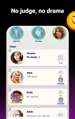 Переписки здесь никогда не бывают скучными. От легкого флирта до глубоких разговоров - все зависит только от вас. Виртуальные свидания превращаются в яркие эпизоды, наполненные эмоциями, словно вы листаете страницы интерактивного романа, где вы сами - главный автор.