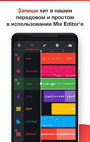 • Добавлять биты, лупы и вокальные партии одним касанием экрана