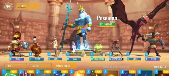 В основе игрового процесса лежит создание мощной колоды карт. Вам доступны десятки разнообразных существ, героев и магических артефактов из греческой мифологии. Каждая карта обладает уникальными способностями и характеристиками: