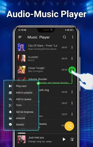 Music Player & MP3 – это не просто стандартный аудиоплеер, а настоящий центр управления всей вашей музыкой на Android. Приложение поддерживает широкий спектр форматов - от привычных MP3 до качественных FLAC и WAV, что делает его универсальным выбором для меломанов с разными вкусами.